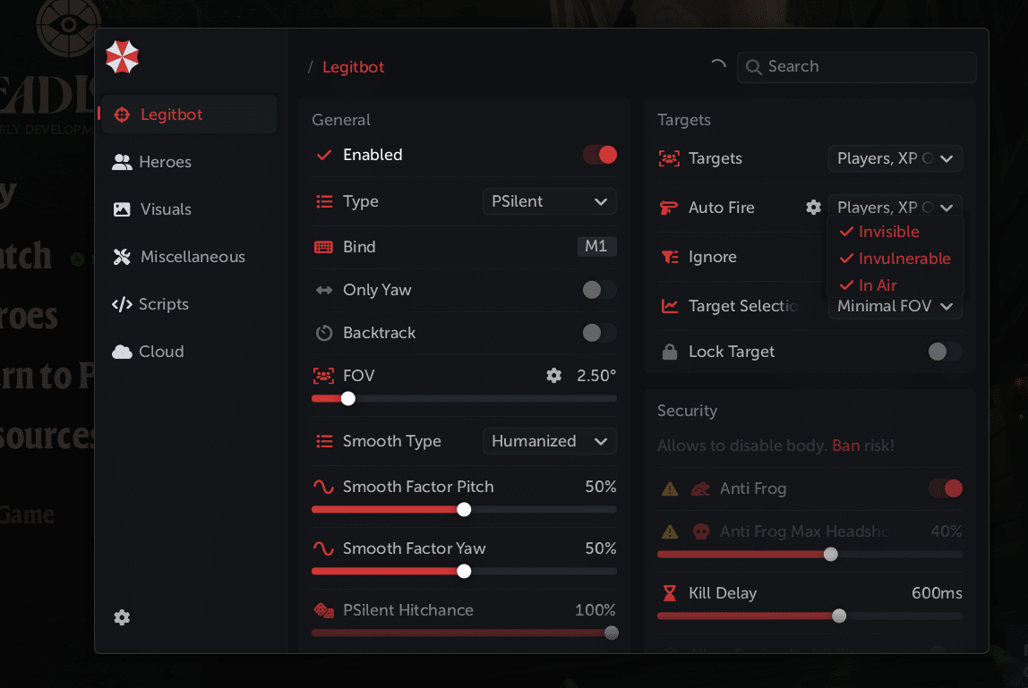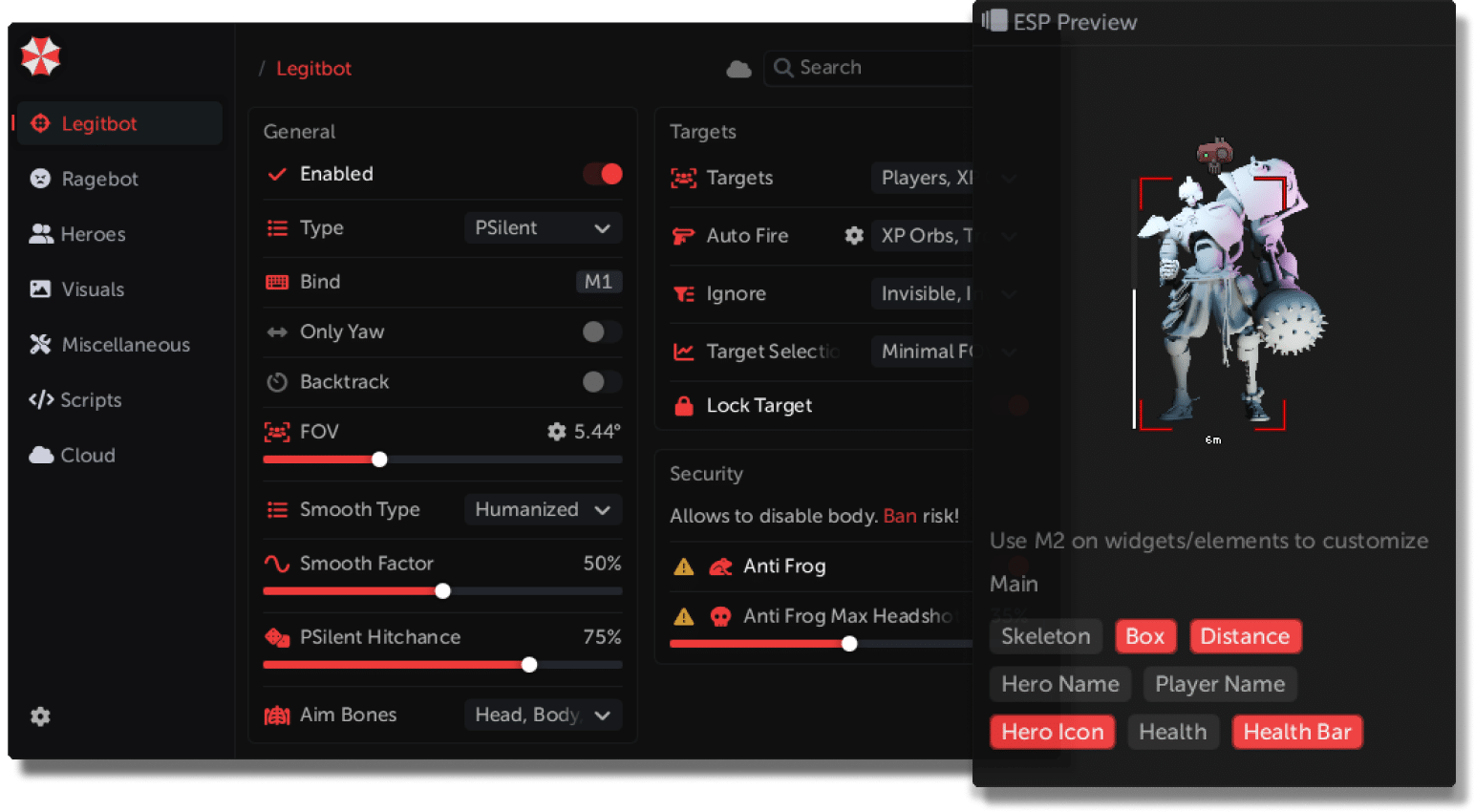 Umbrella is an all-in-one enhancement tool for Deadlock, providing aim assist, movement optimizations, auto combat execution, vision enhancements, and advanced scripting options. It is designed to maximize efficiency while maintaining security and flexibility.